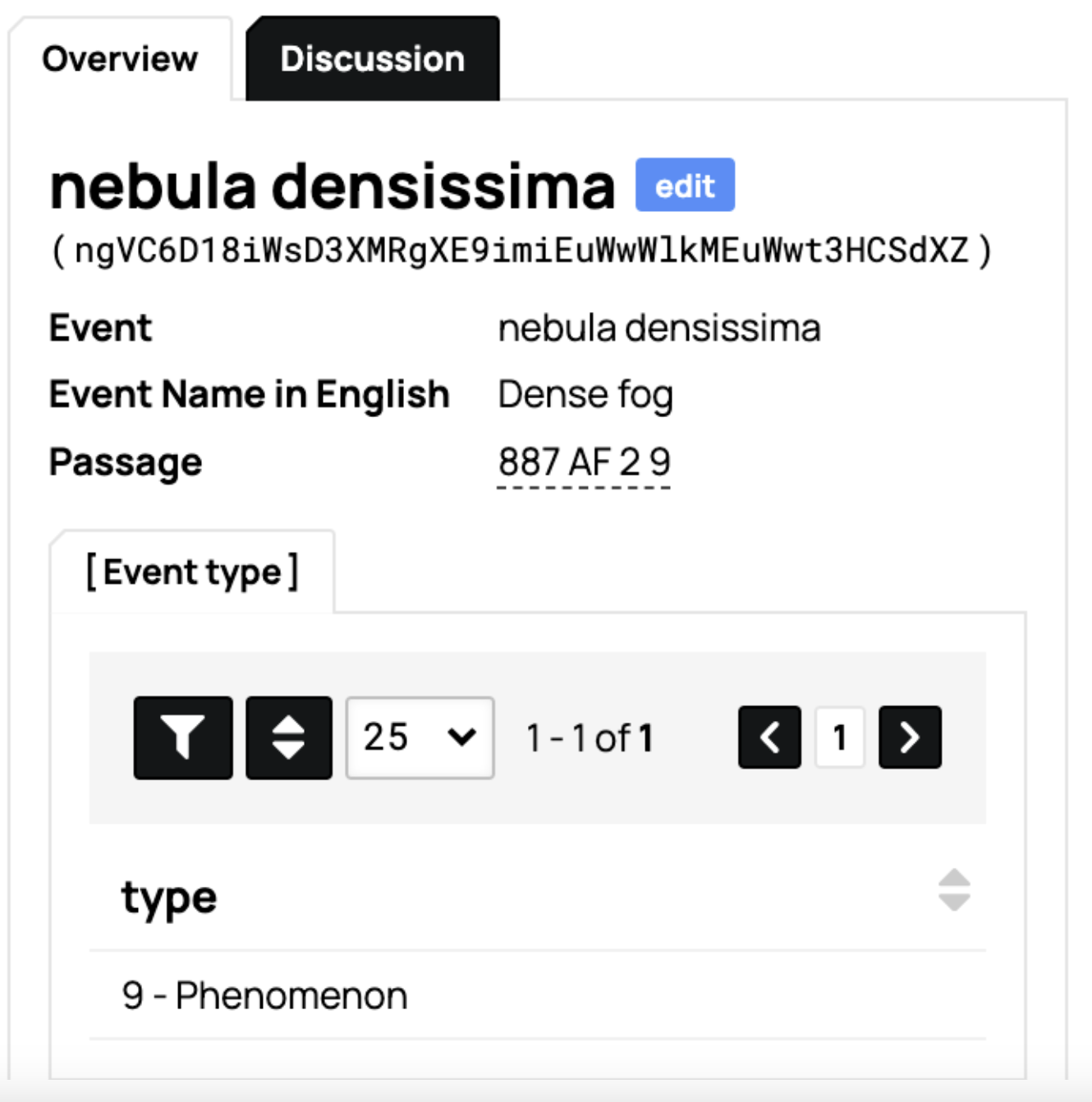 The event is going to only be written in Latin and the passage will be linked to the event via the ‘subobject’ within Event as can be seen here: